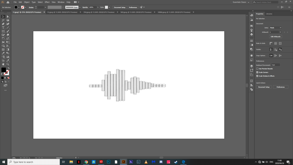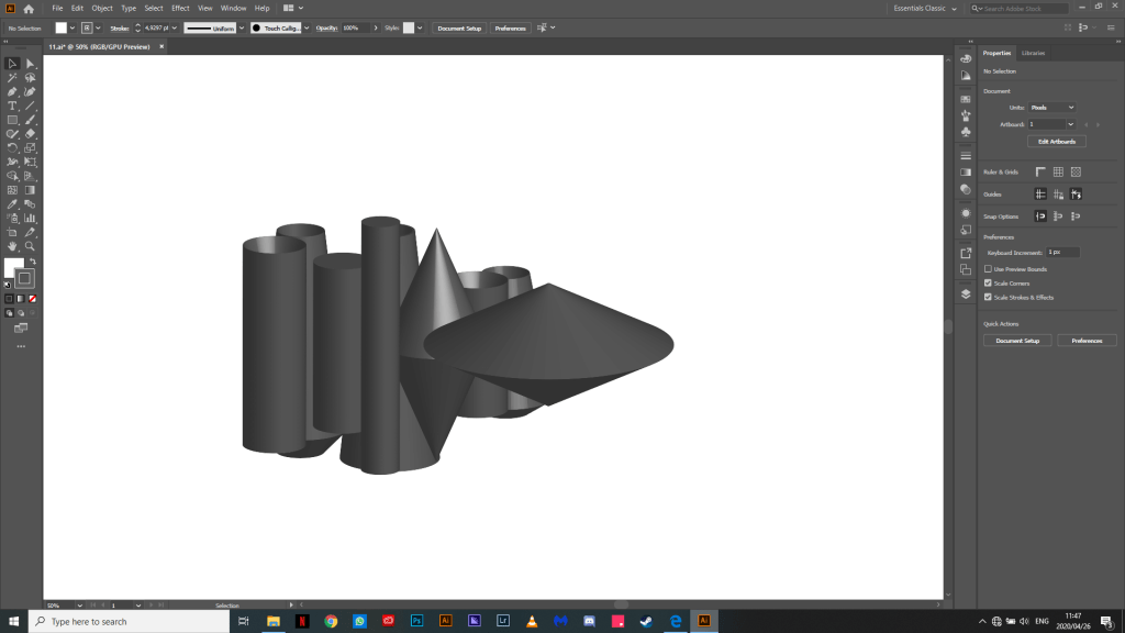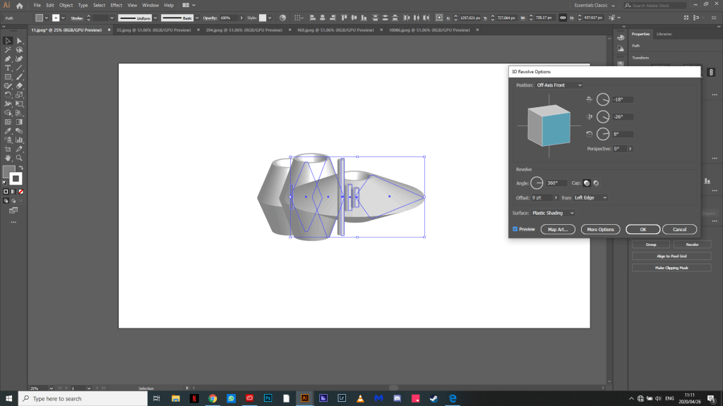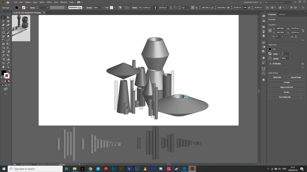 I then took a screenshot of these recordings and put them in Ai and started to draw over them with shapes and made them 3D with the revolve tool in Ai.