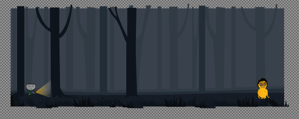 The background is more vector styled and it is complimenting my characters well. I might happy to go back to my Enemy character and dull his colours a bit because he is really bright in contrast with eh background.