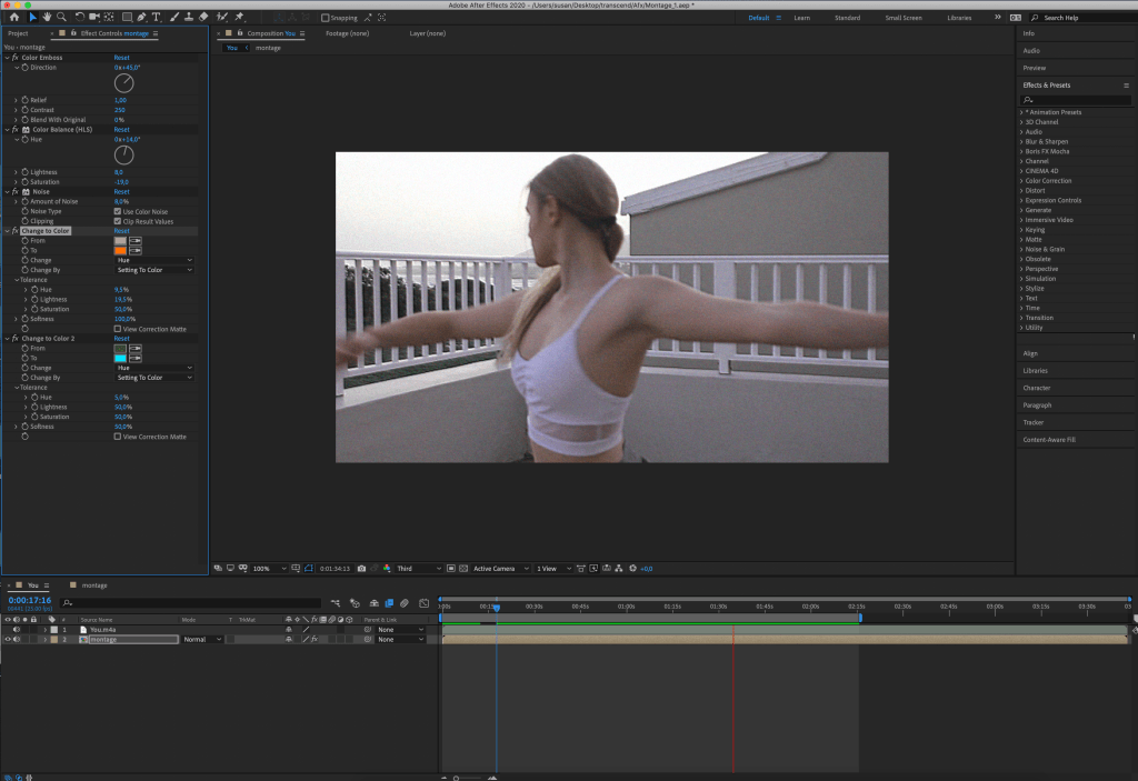 So I took the montages I have and created a clip to play around with some effects in AFX. And I created a very nice subtle old film/VHS effect without it being too much. I don’t want it to look like that typical gangster glitchy VHS effects haha. So I really like my custom made effect. Here are 2 stills with the effects applied.