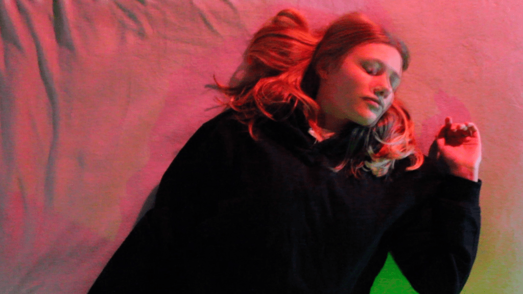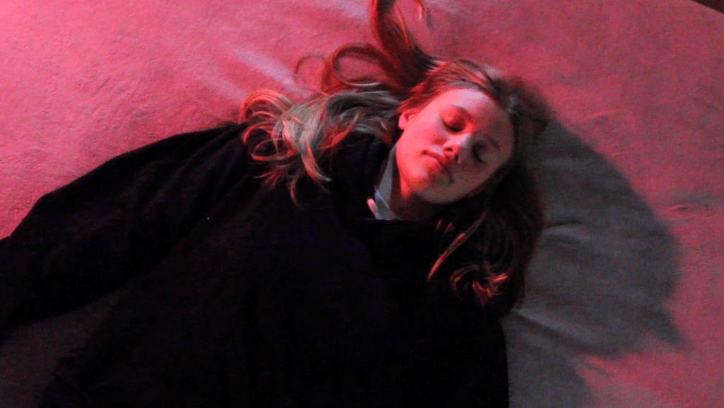 The shot then goes back to her lying on the bed but we start to realise that her mind is not completely there. The shot starts to blur when she moves her head too fast. This effect grows more and more.