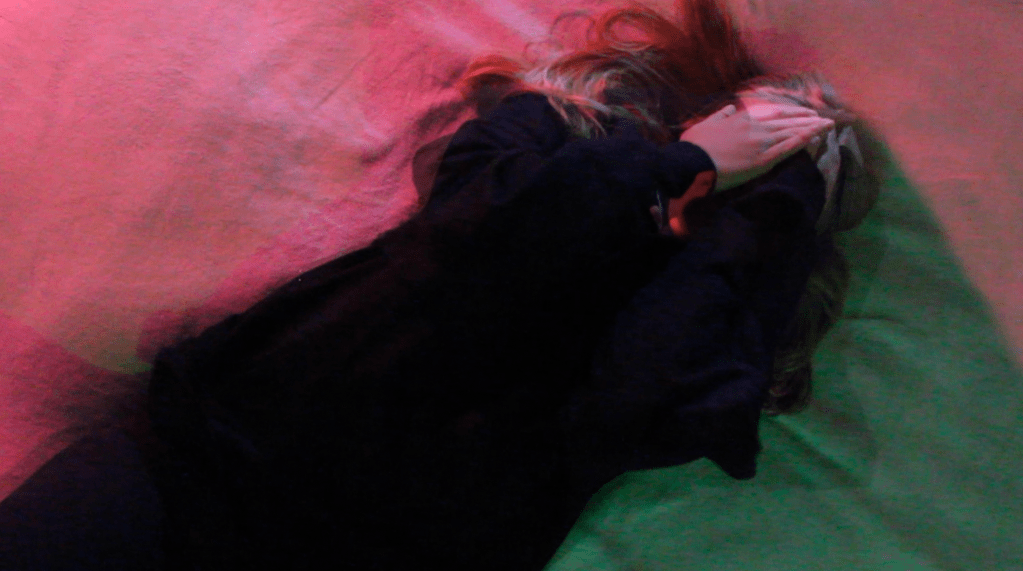 The scene continues to jump back and forth to her depressed/numb/emotionless state on her bed getting more overwhelmed as the film progresses. She closes her eyes slowly to dream back of things that bring her happiness and peace.