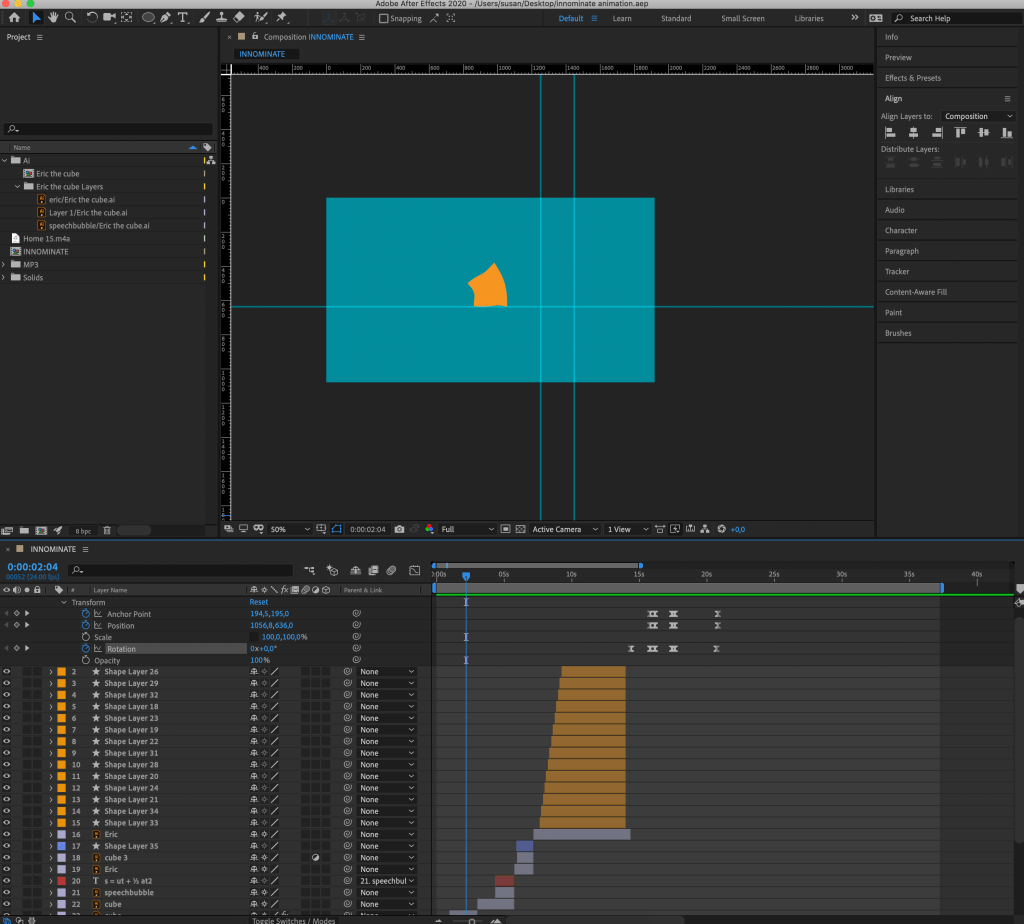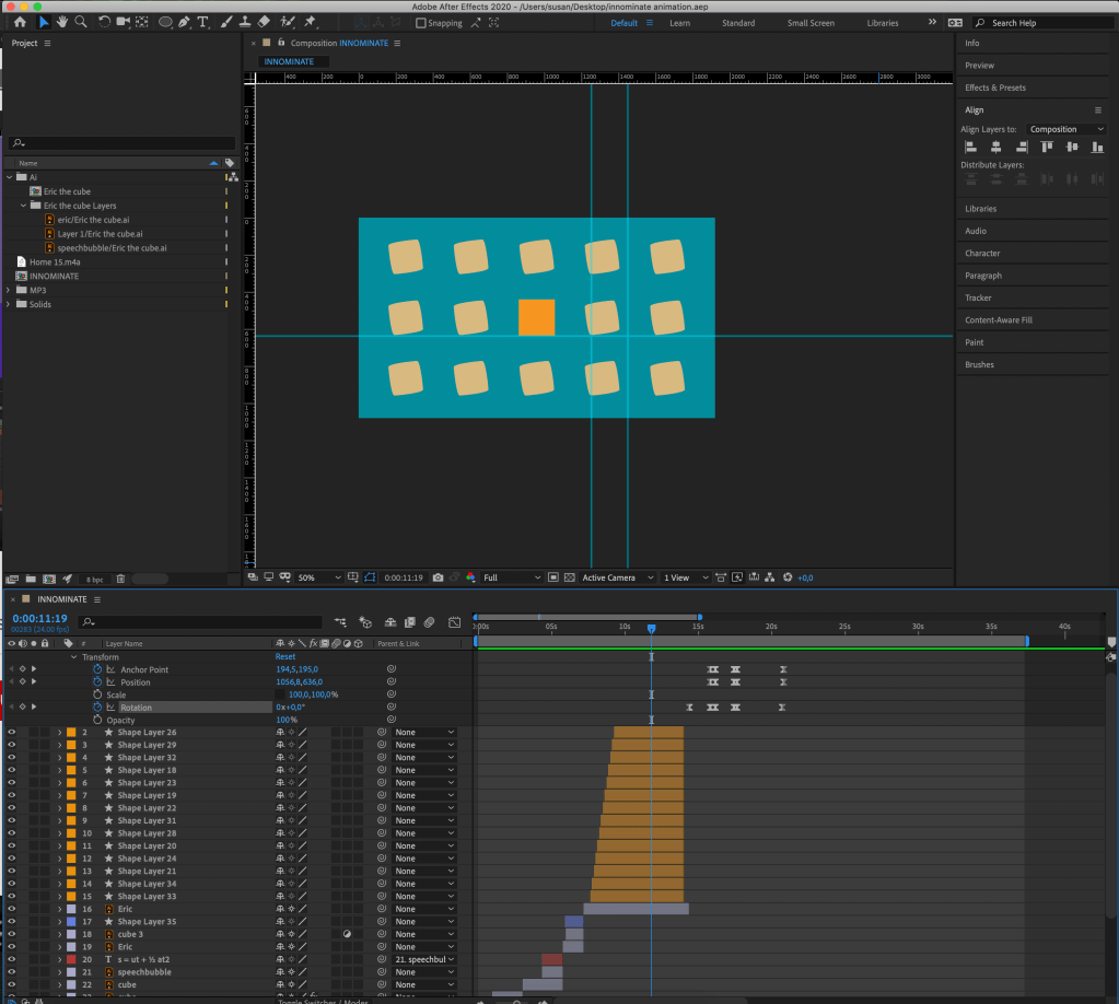 Animate animate animate Posted on September 12, 2020 by susan_paxton_ Posted in Event 6 So I am happy with my progress. My square is doing some funky moves like Stretching Flipping a triangle Shape morphing Rotating with speed (speed graph) Share this: Share on X (Opens in new window) X Share on Facebook (Opens in new window) Facebook Like Loading...